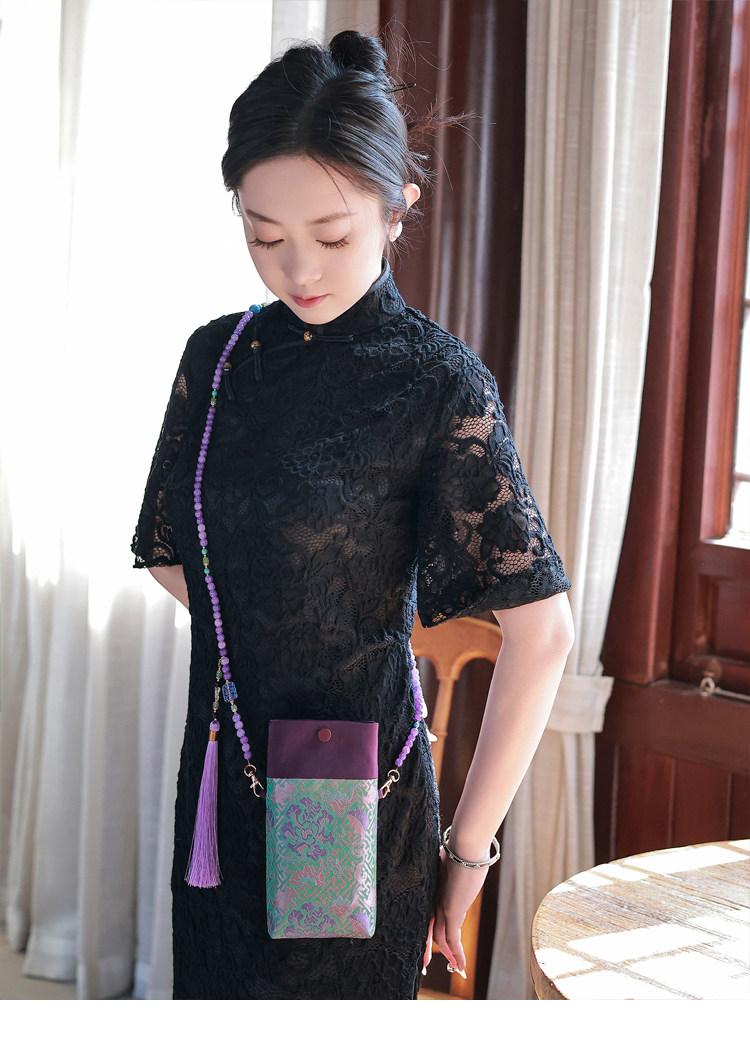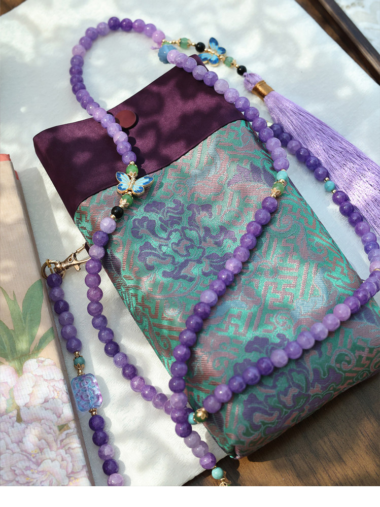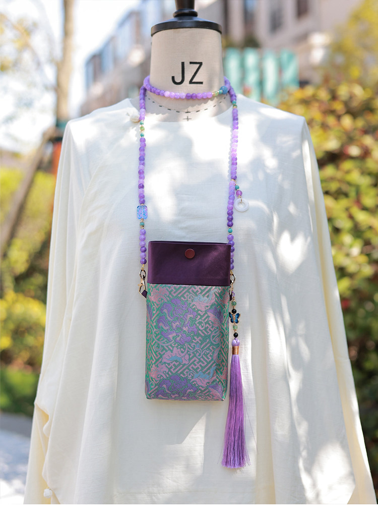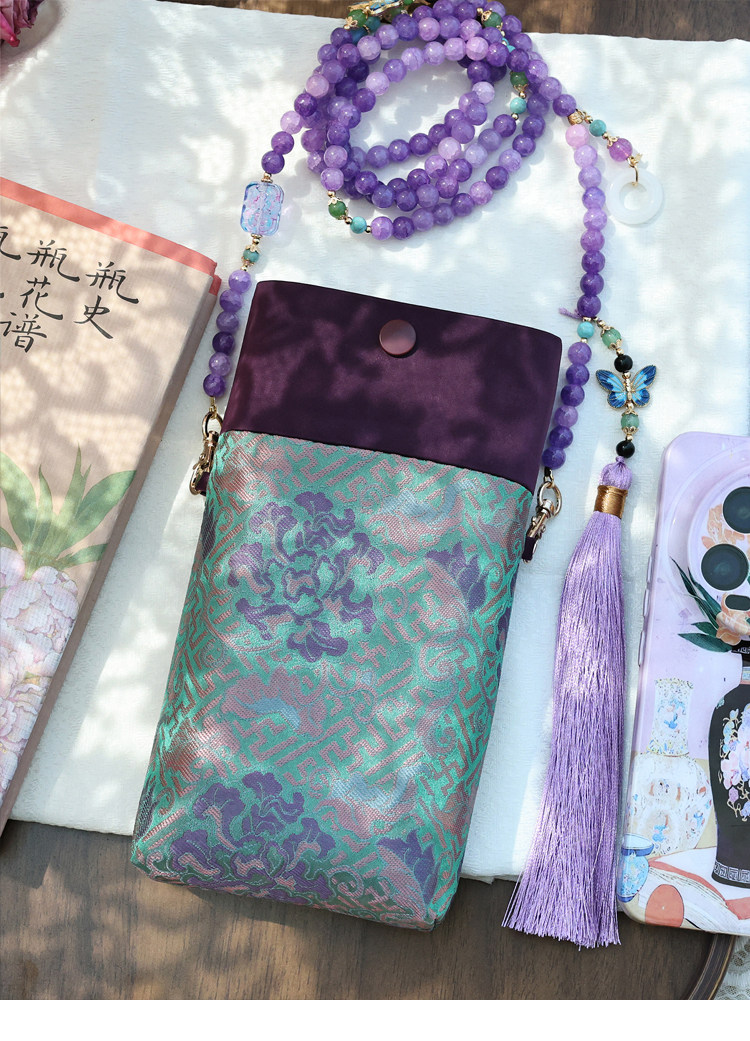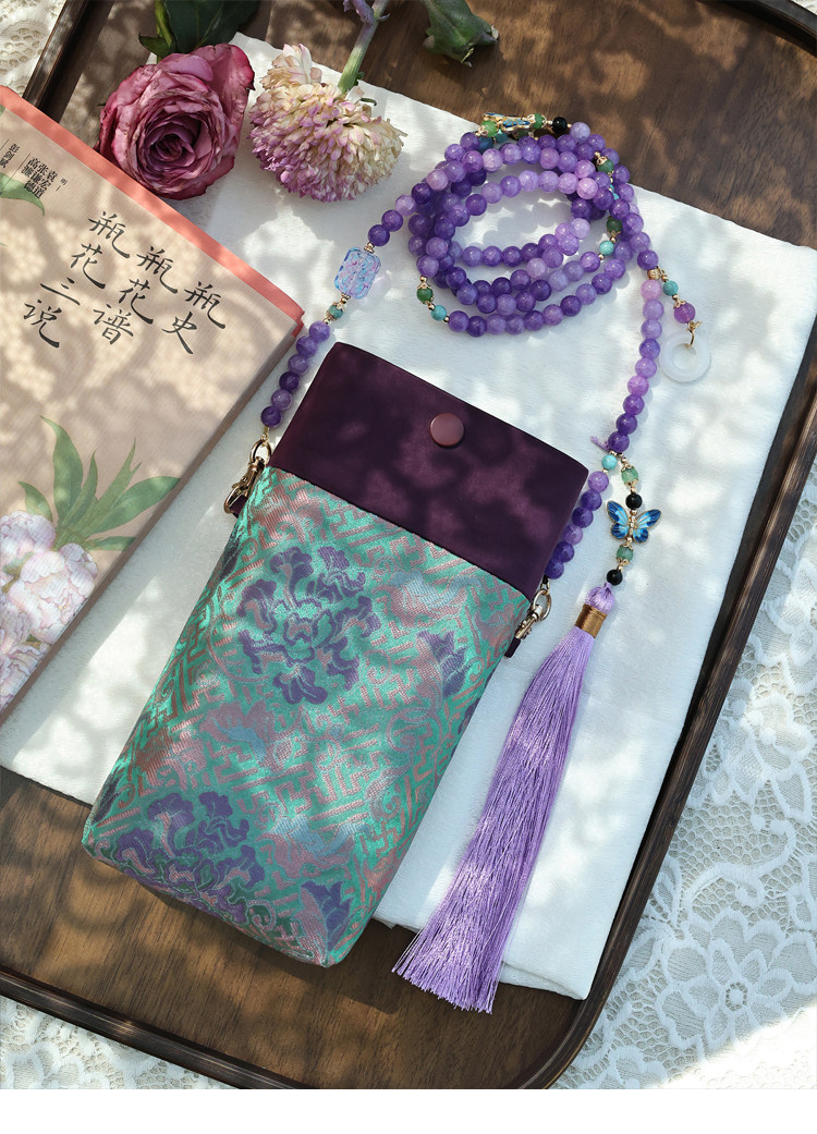 Floral Motif Bag | Color-Block Canvas Crossbody with Beaded Strap
