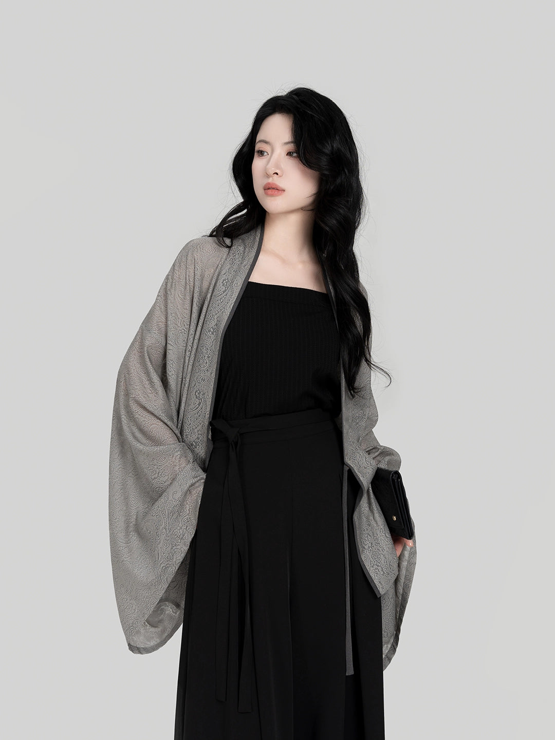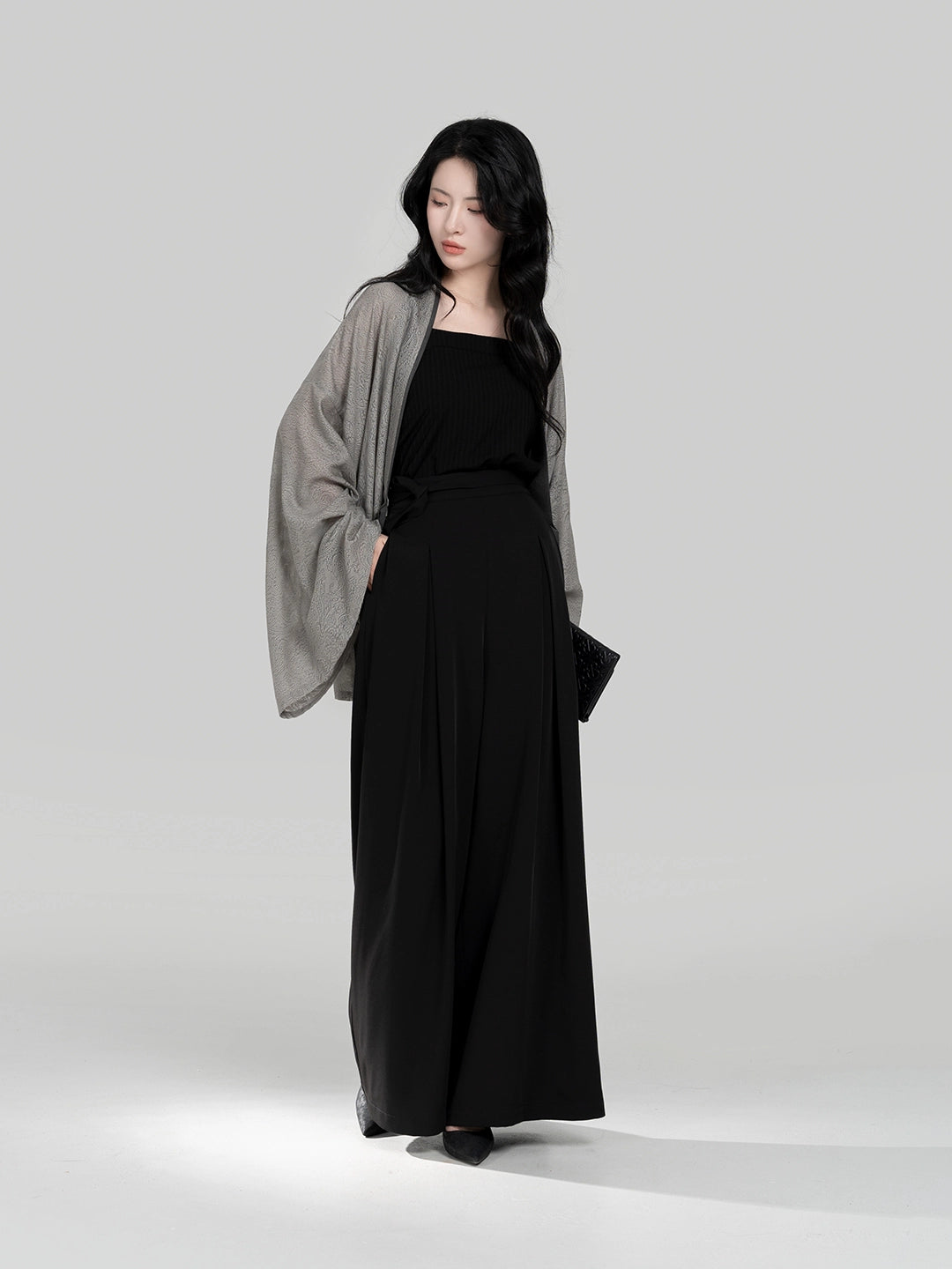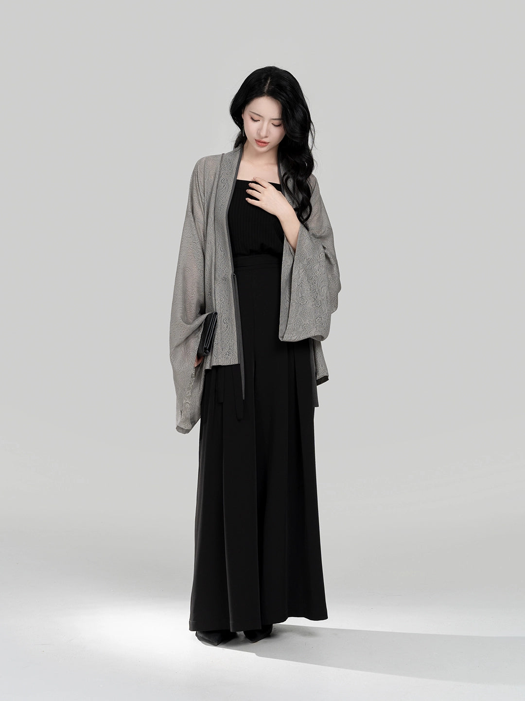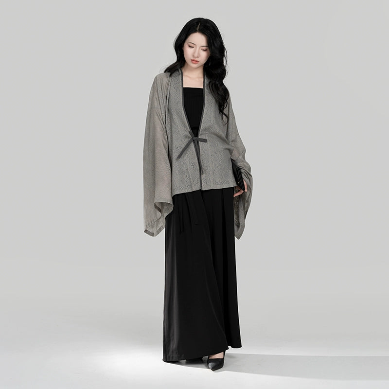 Fuyue – Wei & Northern Dynasties Inspired Modern Hanfu | Pleated Outer Top with Round-Neck Short Sleeve T-Shirt & Song Pants