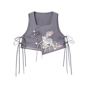 - Embroidered Bijia Vest: Delicate embroidery with side tie details