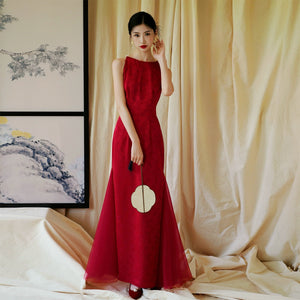 "Happy hairpin" red yarn original improved cheongsam bridal wedding dress toasting dress engagement