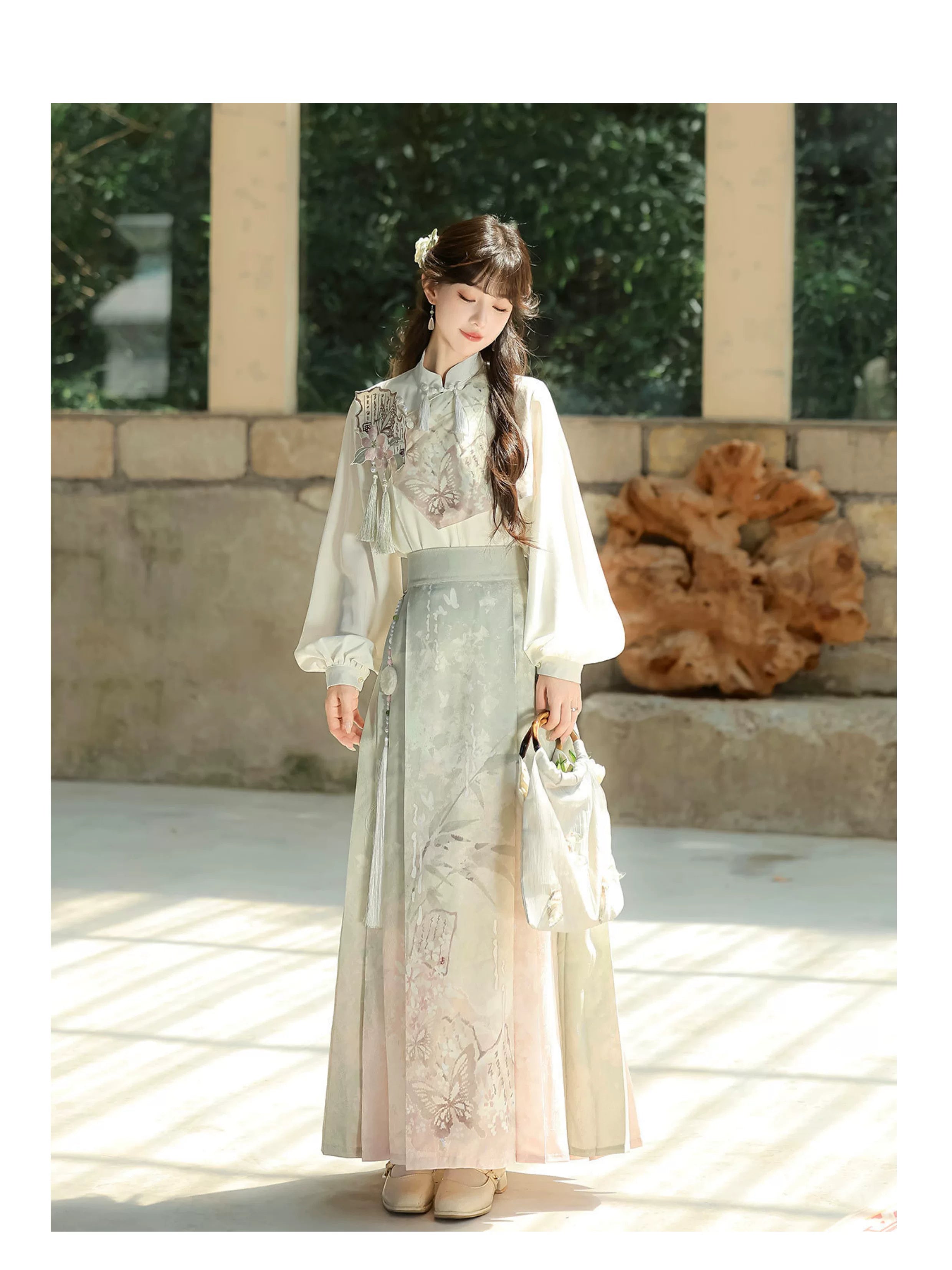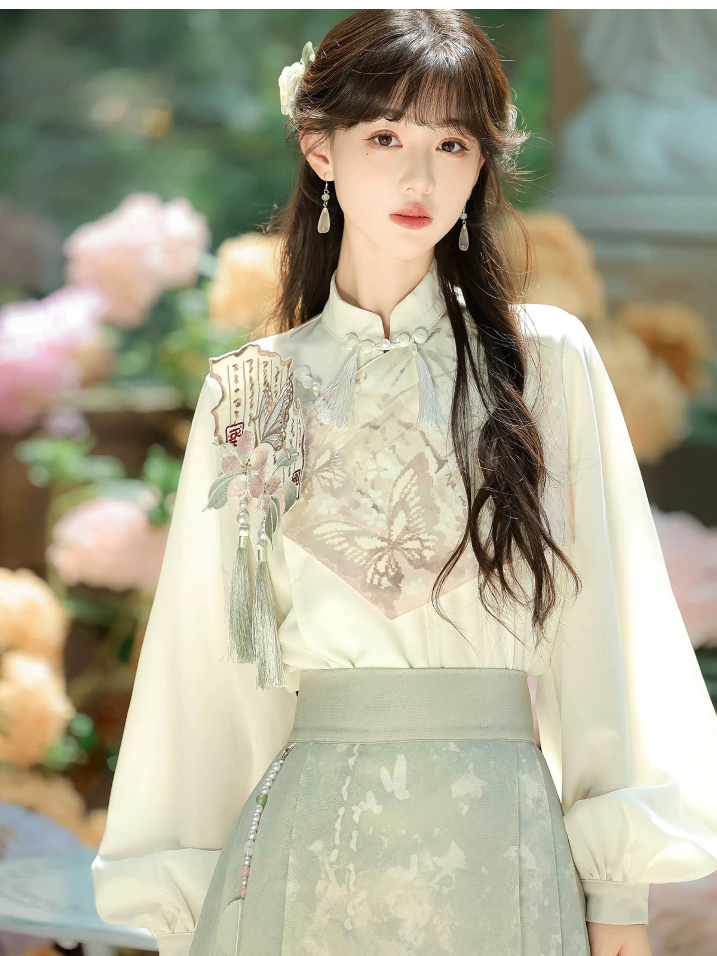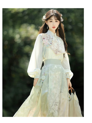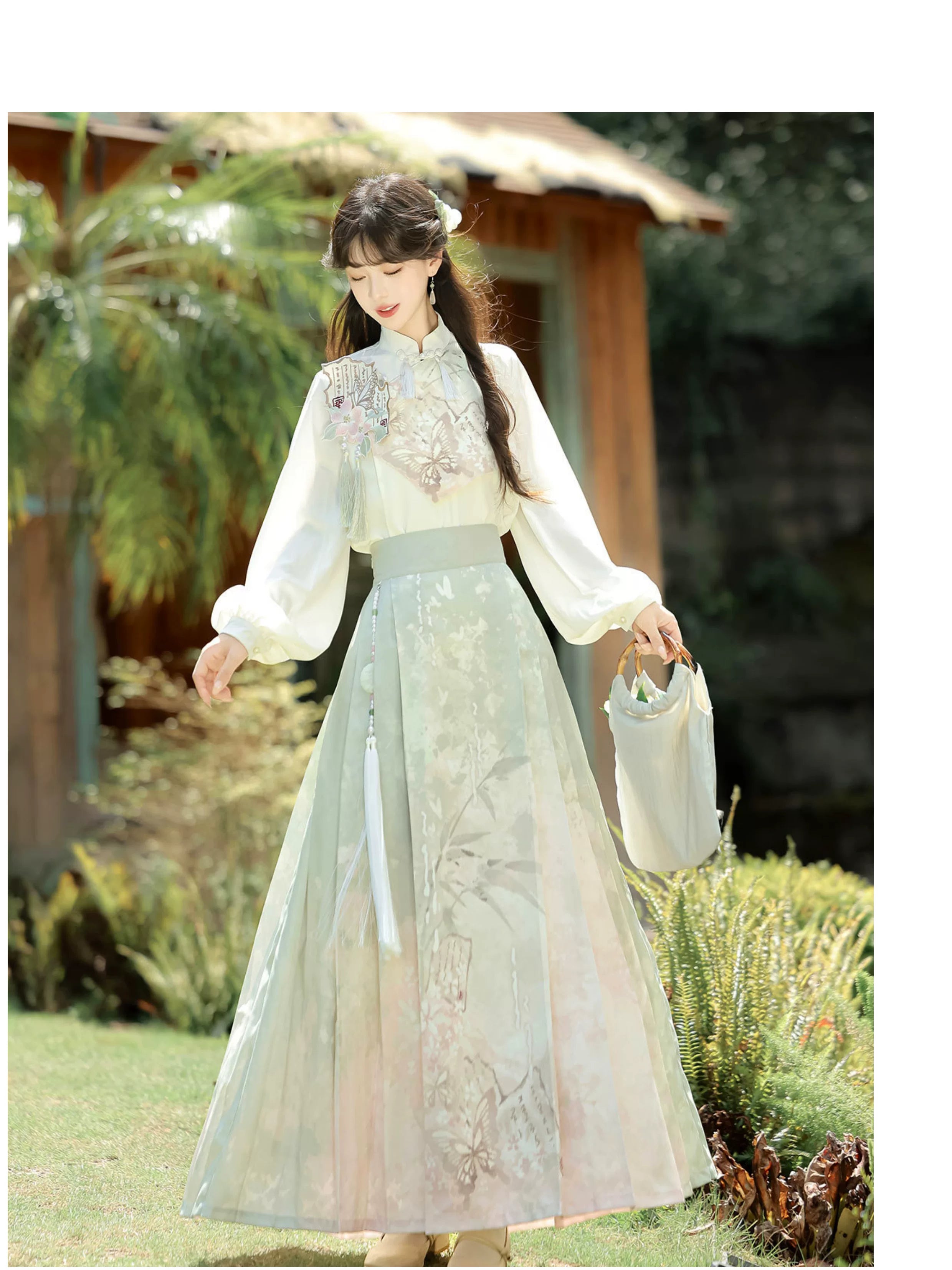 Improved daily Hanfu women's new Chinese style stand-up collar top with horse skirt skirt Han element suit