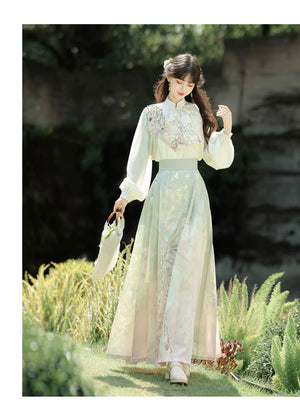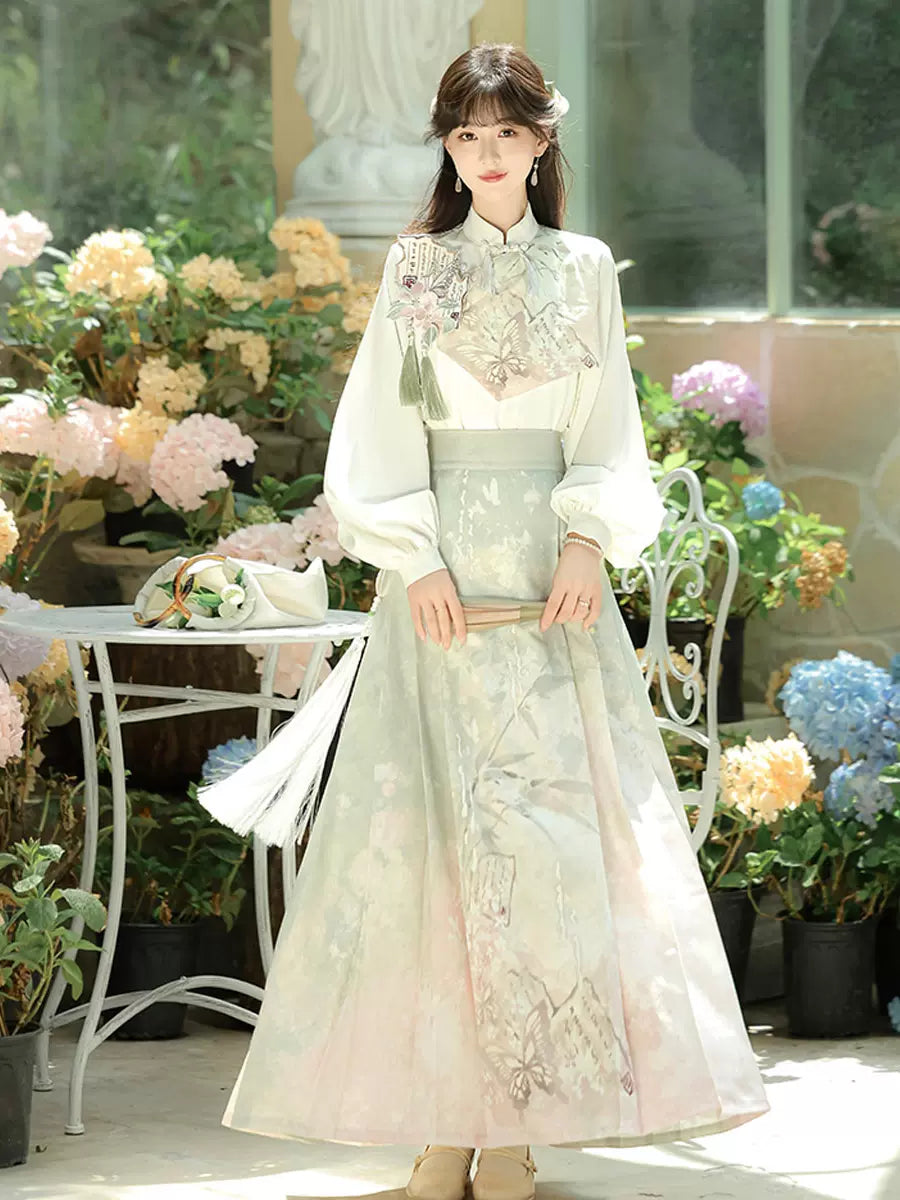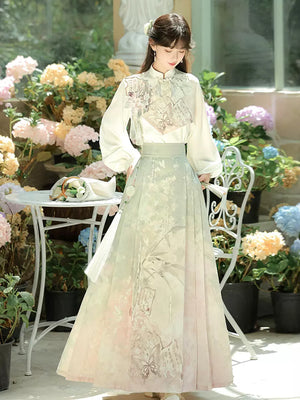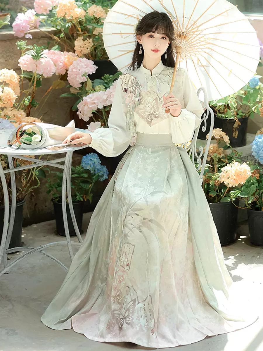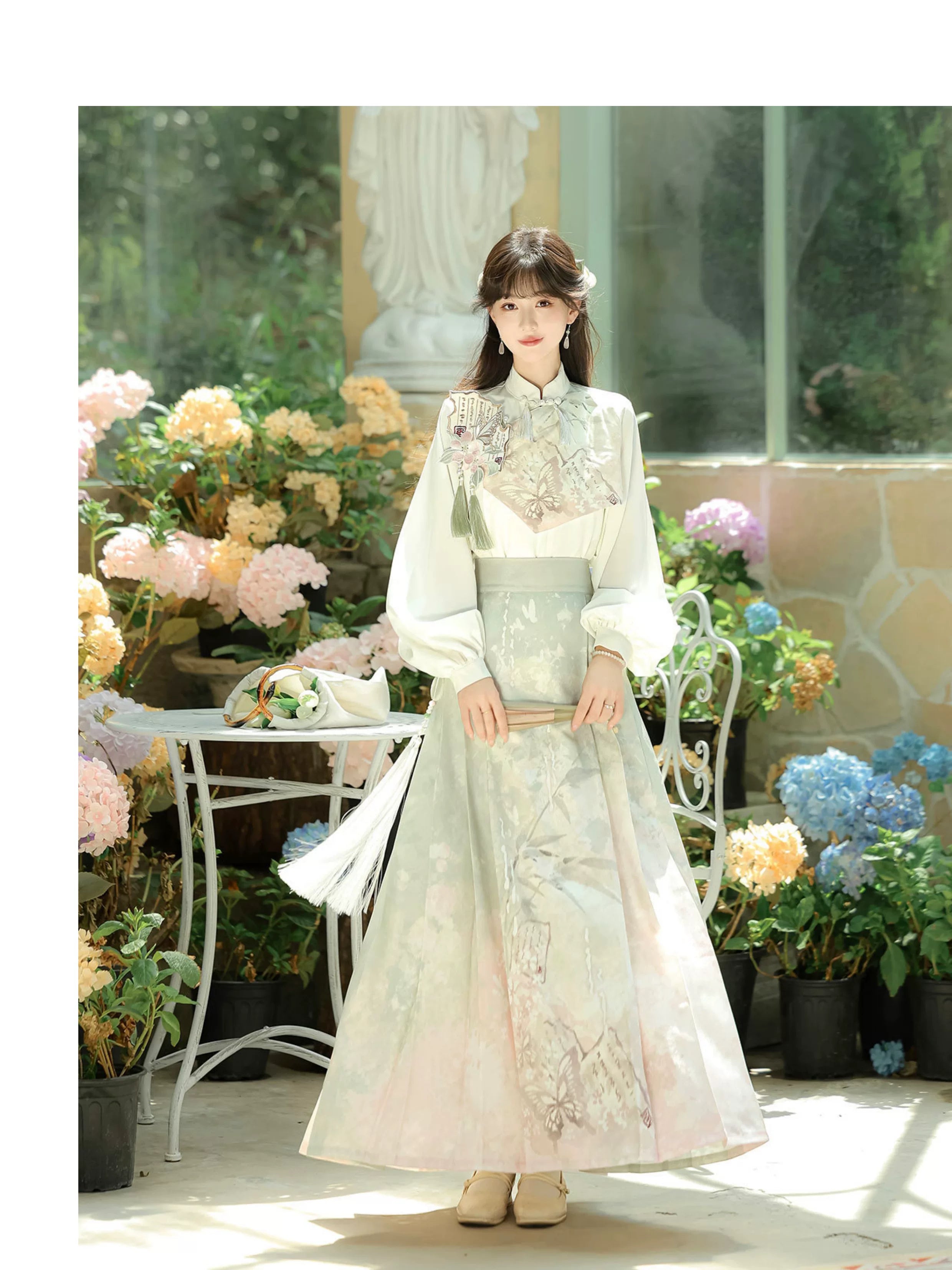 Improved daily Hanfu women's new Chinese style stand-up collar top with horse skirt skirt Han element suit