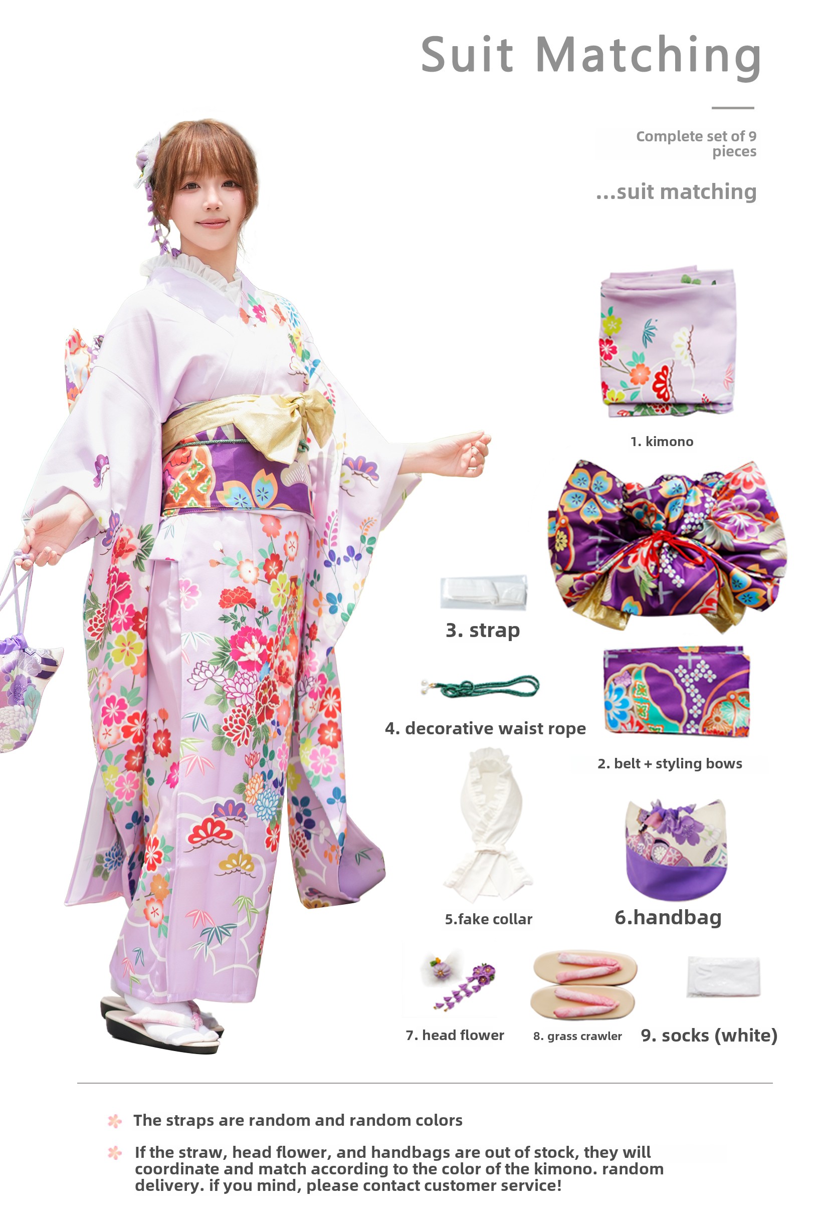 Kimono Women's Japanese Traditional Big Sleeve Improvement Dress and Dress Set Positioning Printing Bar Mitzvah Kimono