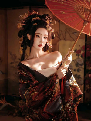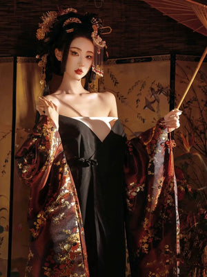 Korean black Hanbok Set – Exotic Long Robe Outfit for Photoshoots & Stage | Yanjian-Inspired Style