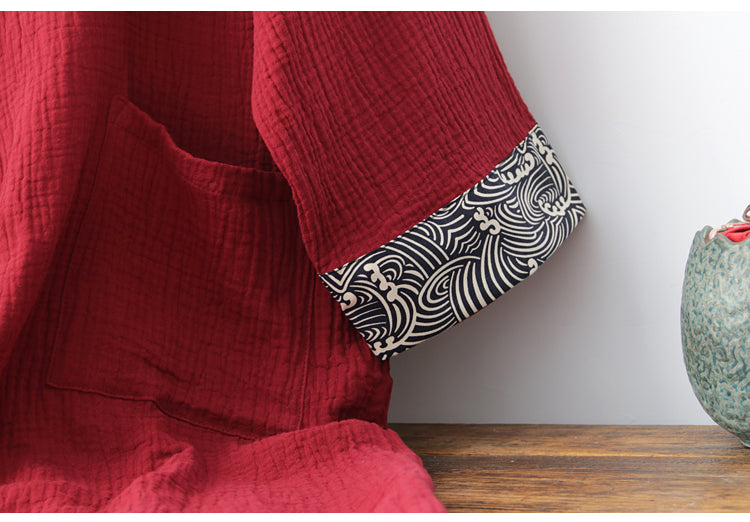 Home Long summer thin pure cotton Hanfu red robe for men and women