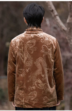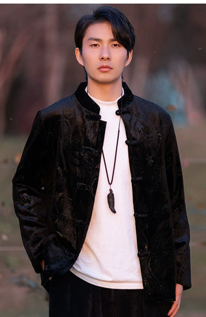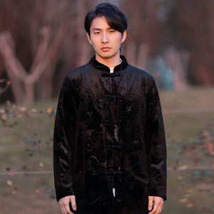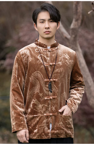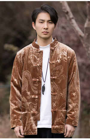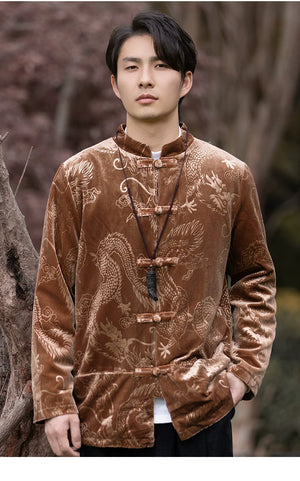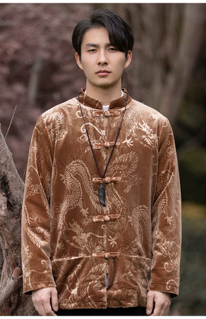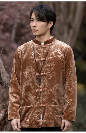 New Chinese velvet improved Tang suit men's top high-end Mao suit Chinese style large size autumn buckle jacket