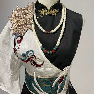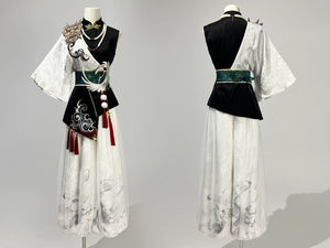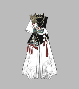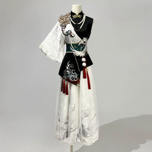 Featuring a breathable cotton hanfu shirt paired with a flowing skirt, this look embodies balance: soft, symbolic, yet completely wearable. Inspired by classical Chinese aesthetics, the set’s design honors the subtle power of the Nuo mask spirit—mysterious, graceful, and protective.