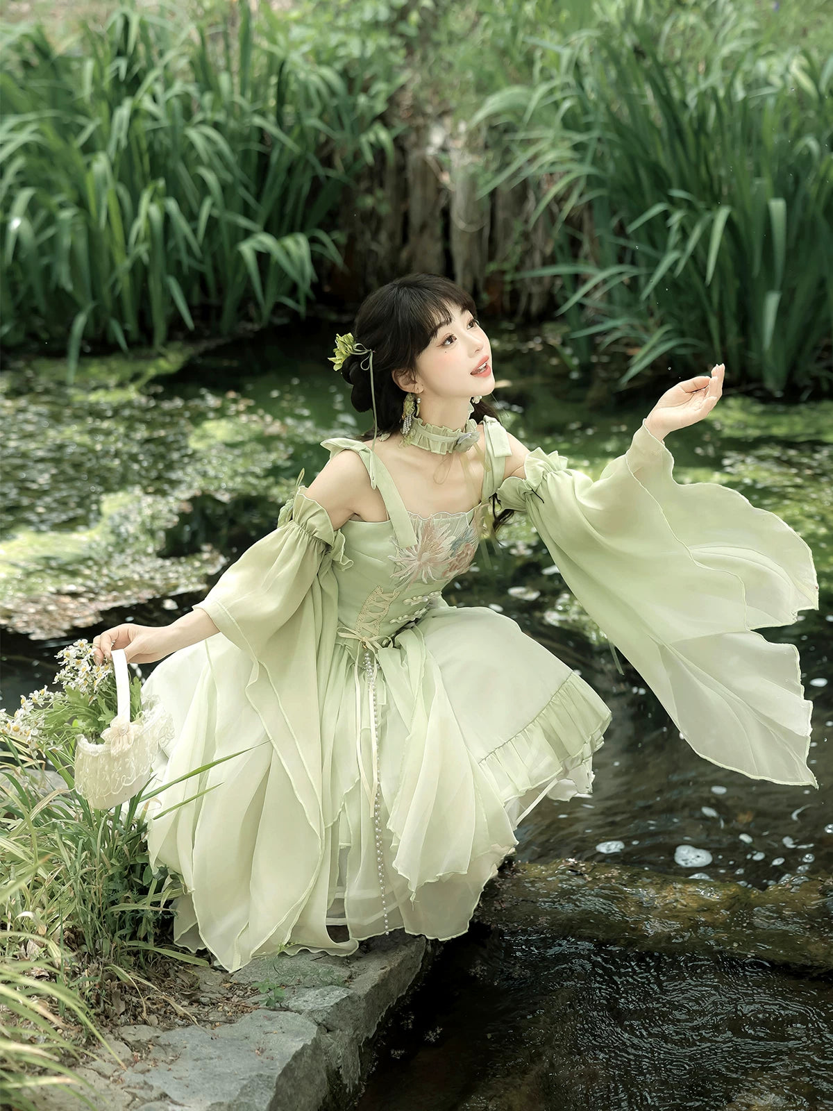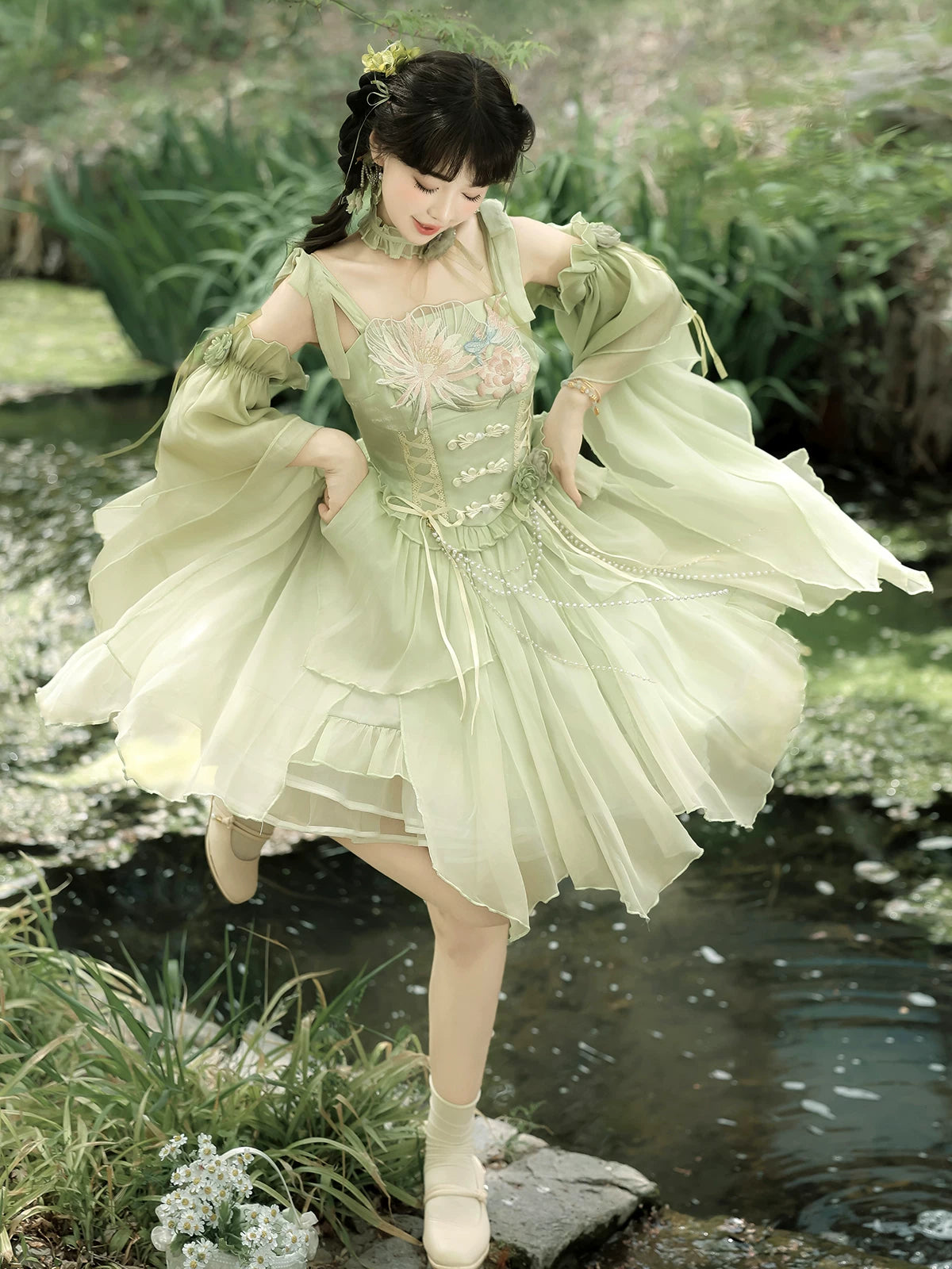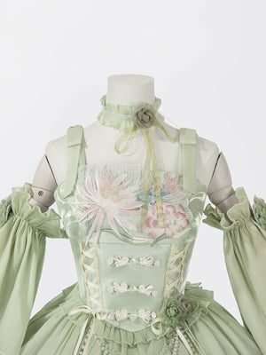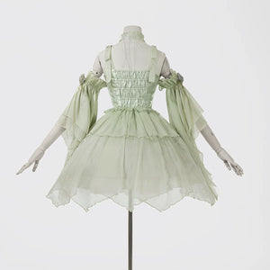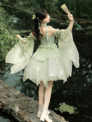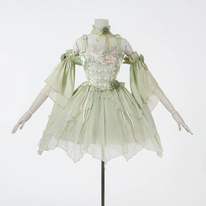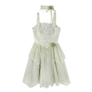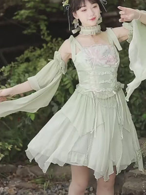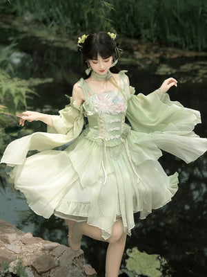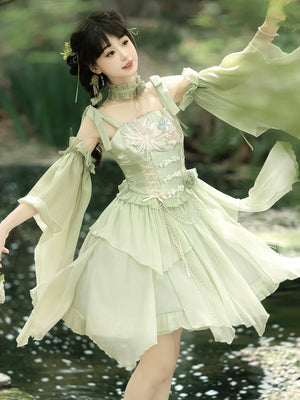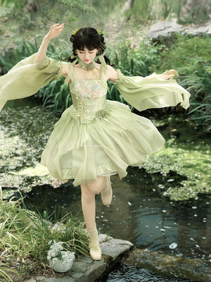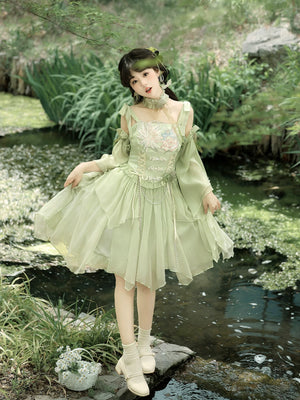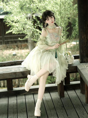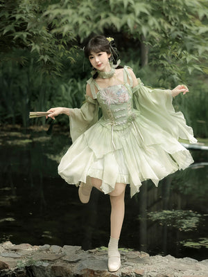 Green Lolita embroidery Han element exquisite super fairy sweet suspender dress summer