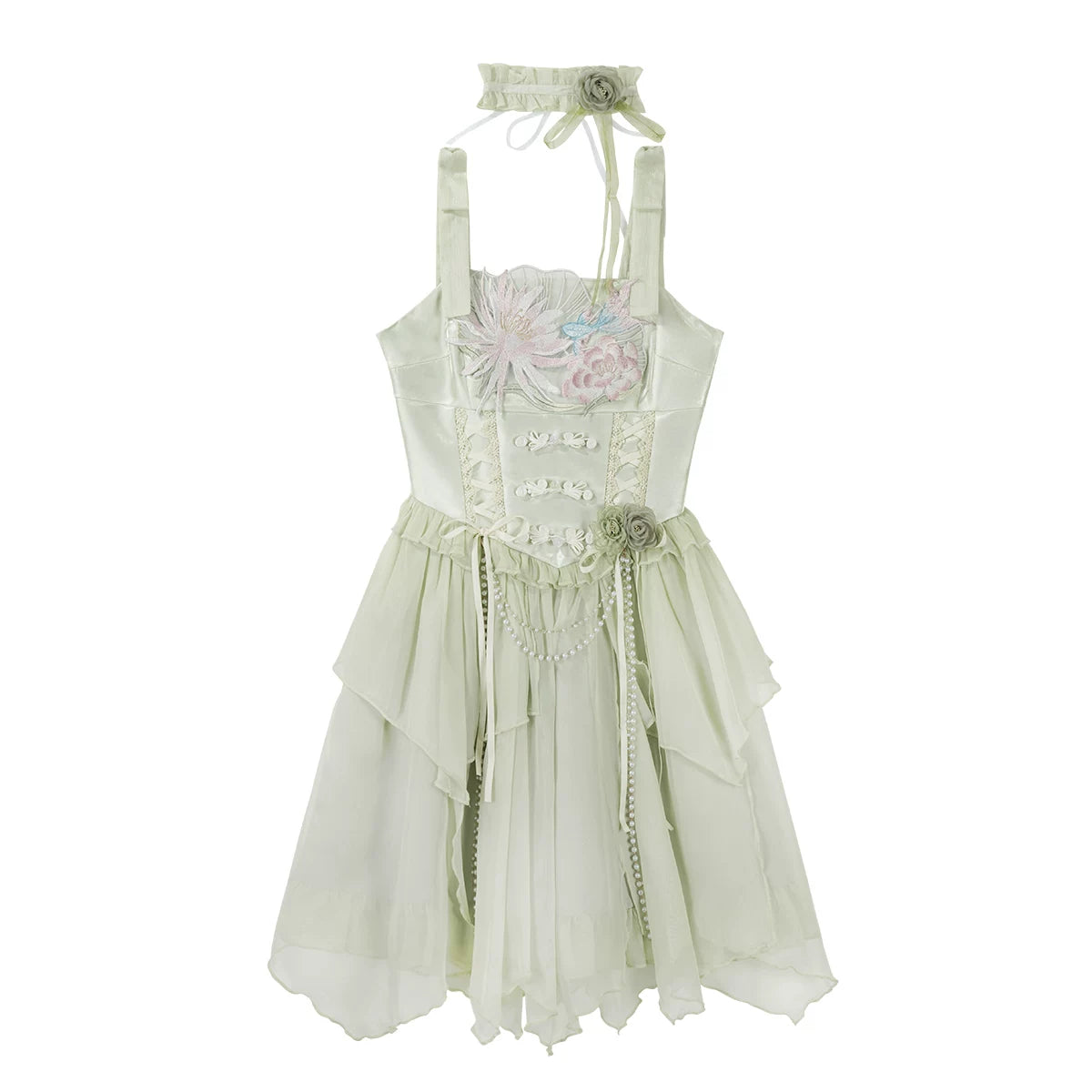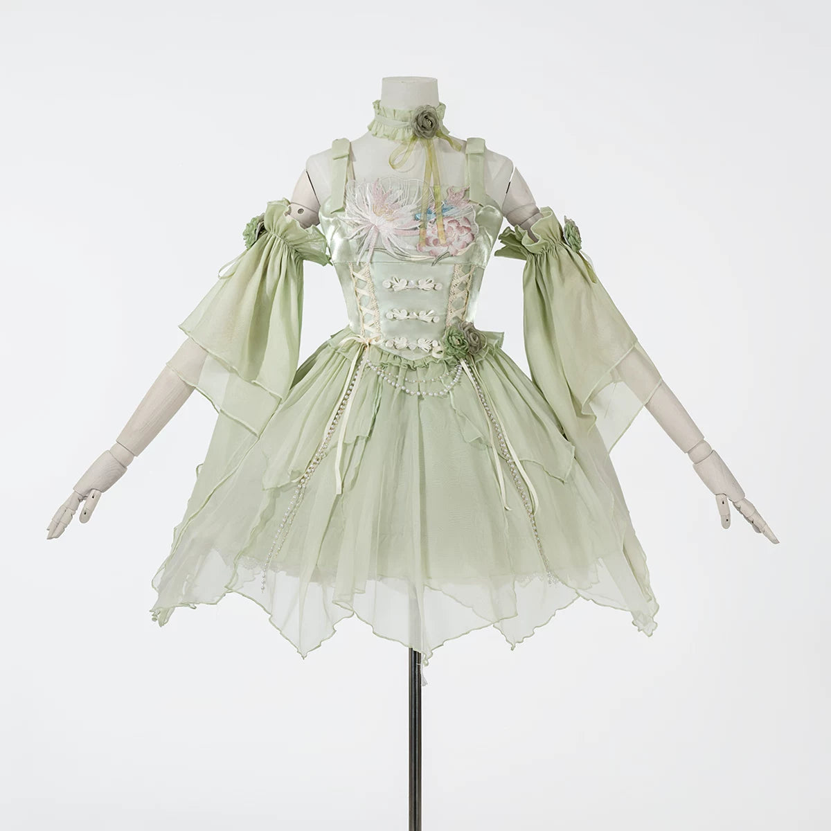 - Collar accessory (领饰): Coordinating collar piece included with suspender skirt options