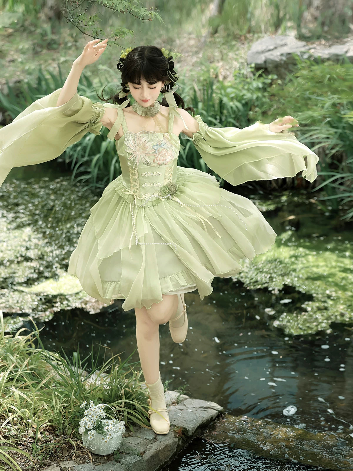 - Style: Chinese-element sweet Lolita — a romantic fusion of Han dynasty embroidery motifs with classic Lolita silhouette
