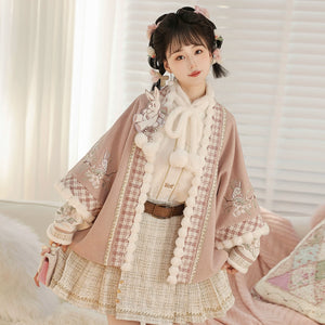 Pink Modern Hanfu-Inspired Outfit – New Chinese Top & Midi Skirt Set for Autumn/Winter