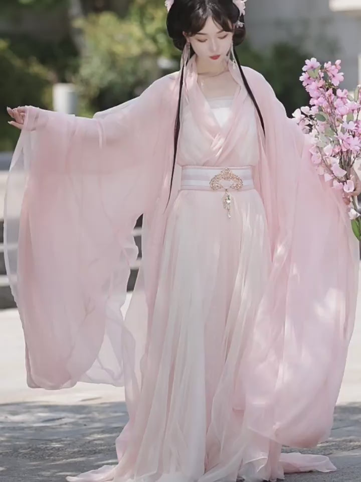 Ethereal, historically inspired, and crafted with meticulous attention to Wei and Jin dynasty aesthetics β the Rolling Moon (Wan Yue) Hanfu Set is a film and television style interpretation of the flowing, wide-sleeve robes of the Wei and Jin period. With its dramatic double-layer wide-sleeve outer shirt, delicate inner shirt, structured waist seal, and flowing lower skirt, this ensemble captures the poetic grandeur of ancient Chinese court fashion in a wearable, daily-friendly form.