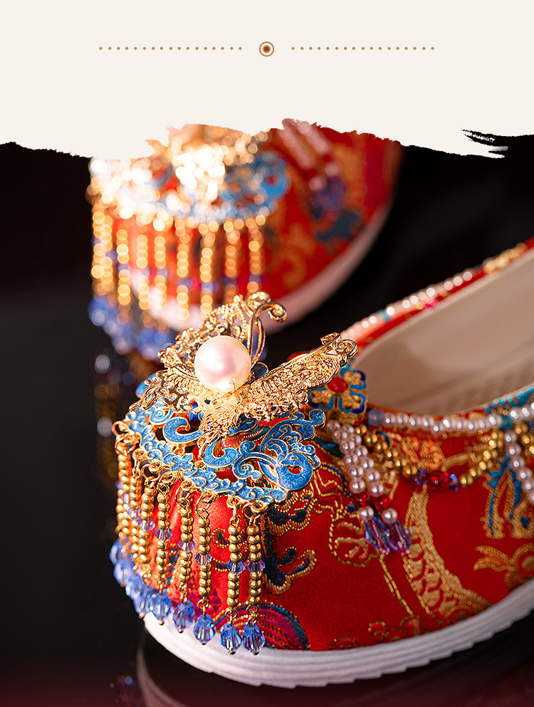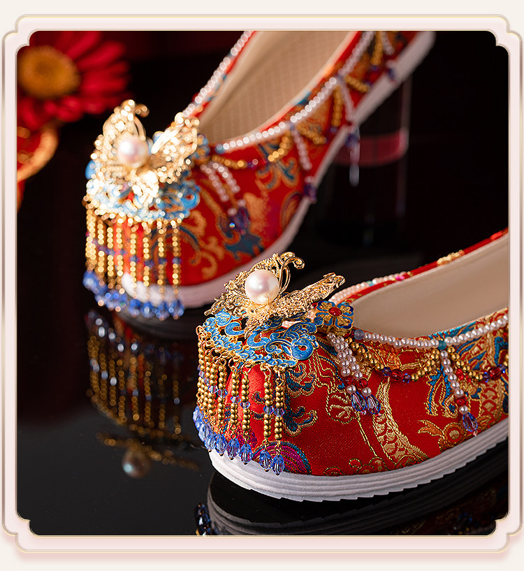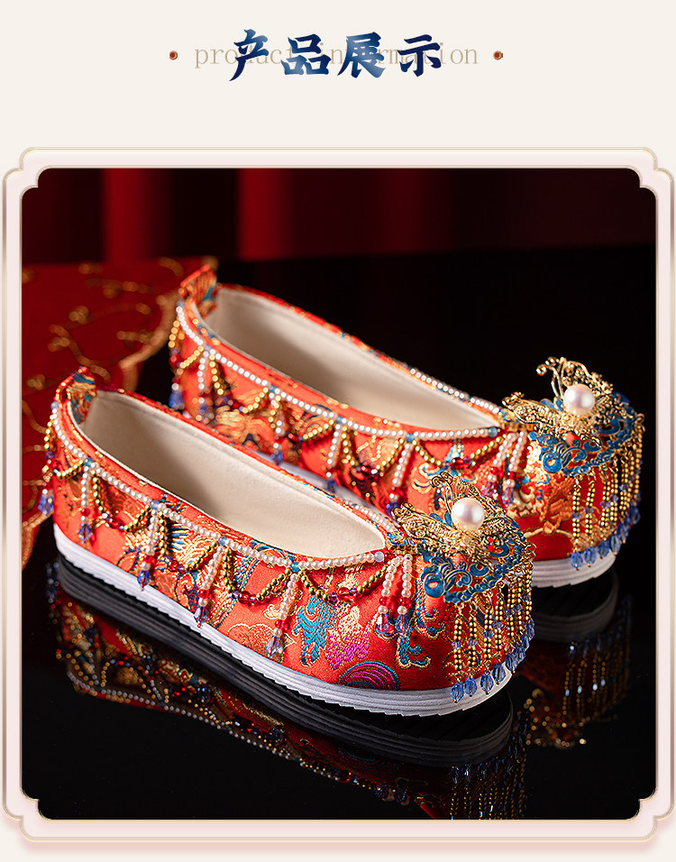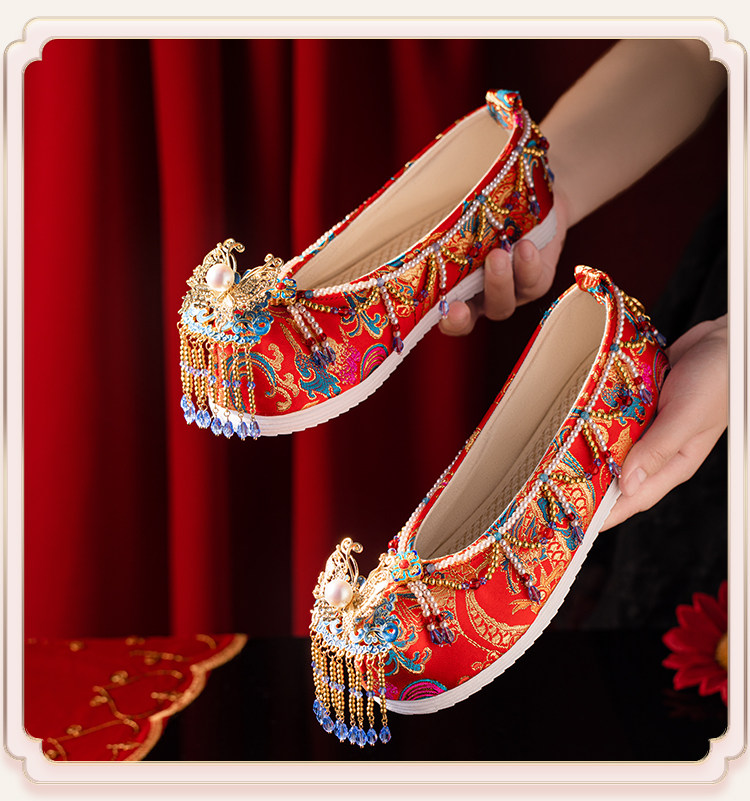 Sankeng Xiuhe Wedding Shoes Women's Customized Tassel Luxury Chinese Wedding Hanfu Shoes Wedding Flat Bow Shoes