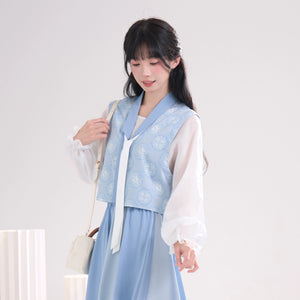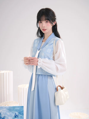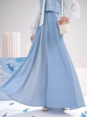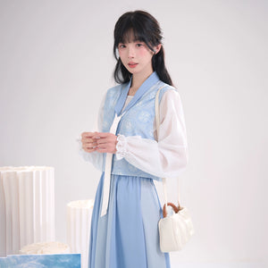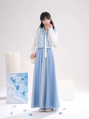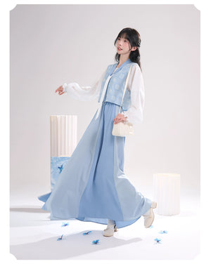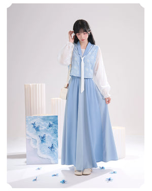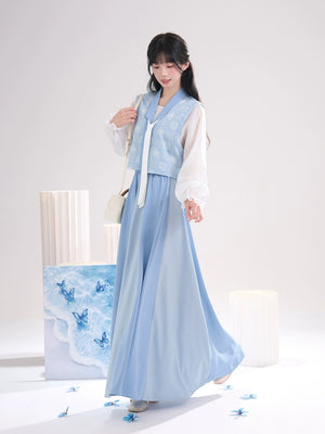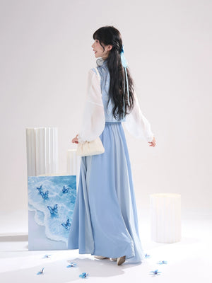Sea Salt Sky Blue – Elegant Tang-Inspired Modern Hanfu with Long-Sleeve Top & Flowing Skirt