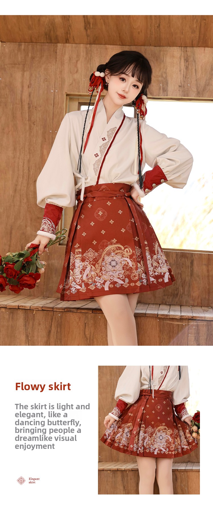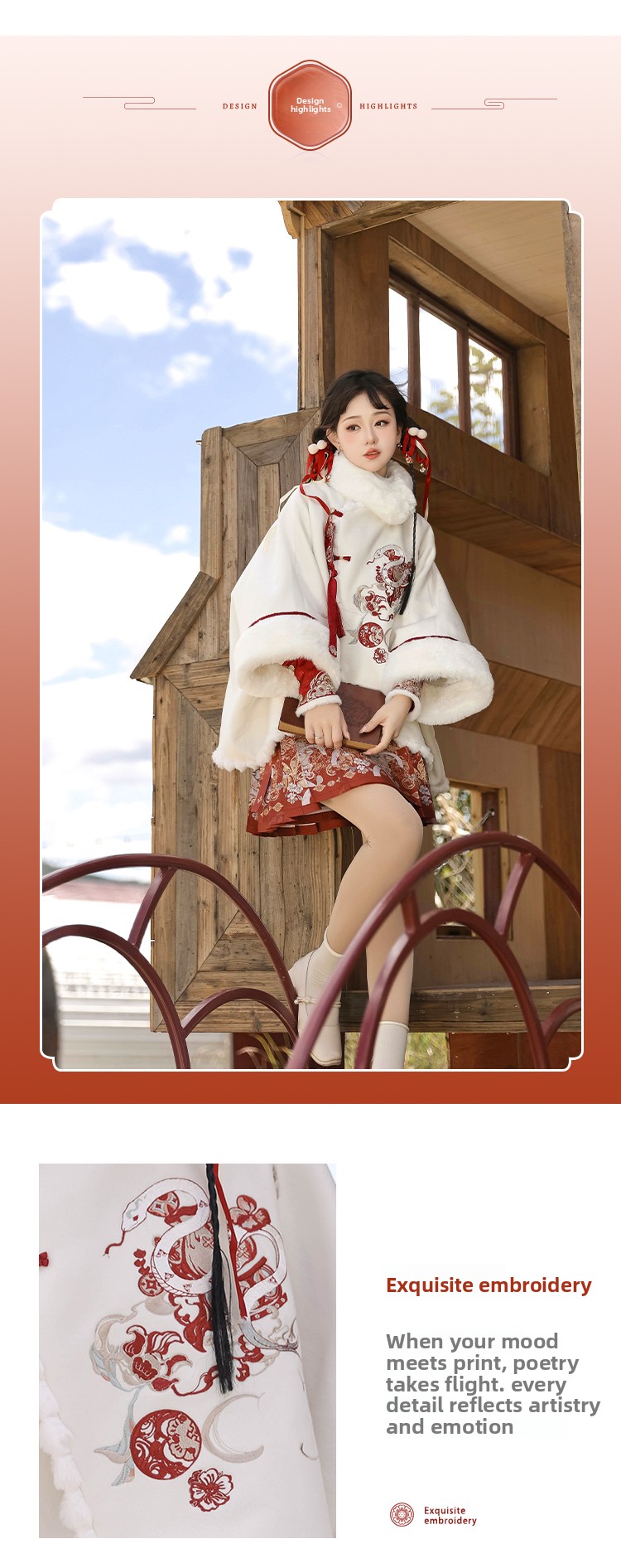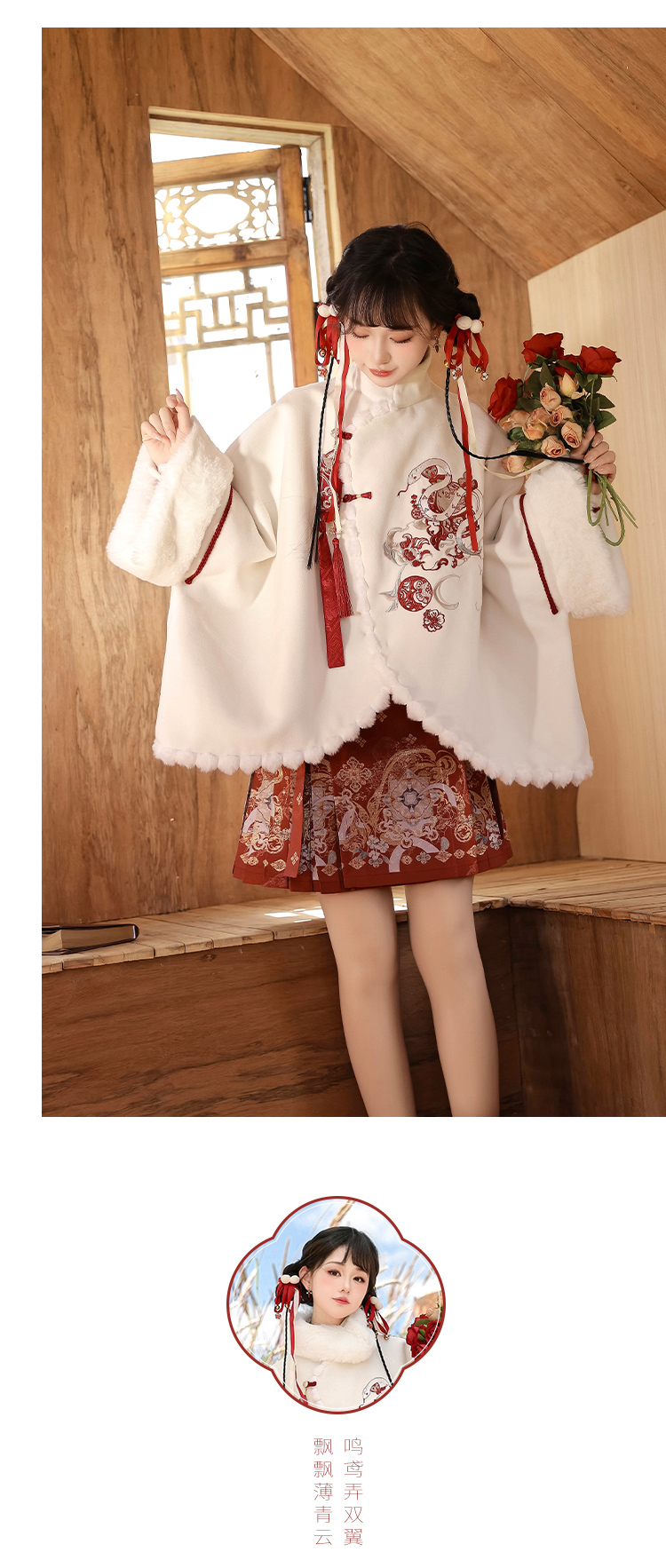 “Serpent Drum” – Modern Hanfu Autumn/Winter Set | Coat & Ma Mian Skirt