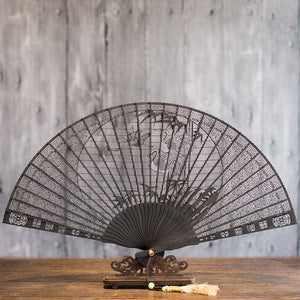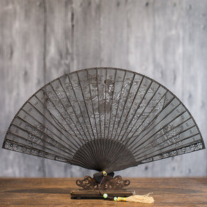 Suzhou sandalwood fan hollow sandalwood Chinese style folding fan