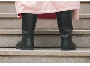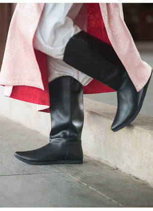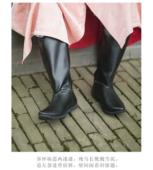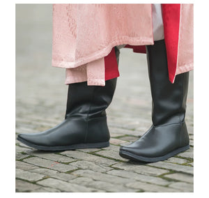 Tang Dynasty black leather six-sewn boots Wuyi Lane restoration black leather long black boots men's and women's Hanfu boots fine Tang Liuhe boots