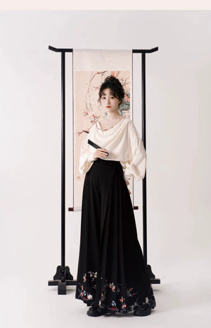 Whispers of Bloom – Floral Crane Set with Horse-Face Pants | Han-Inspired Spring-Autumn Wear
