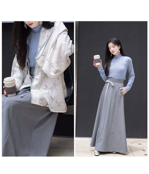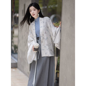 Home White Dew: Bamboo Shadows & Swallow Whispers – Jin-Style Hanfu Set | Tencel Pleated Robe with Rayon Camisole and Flowing Skirt